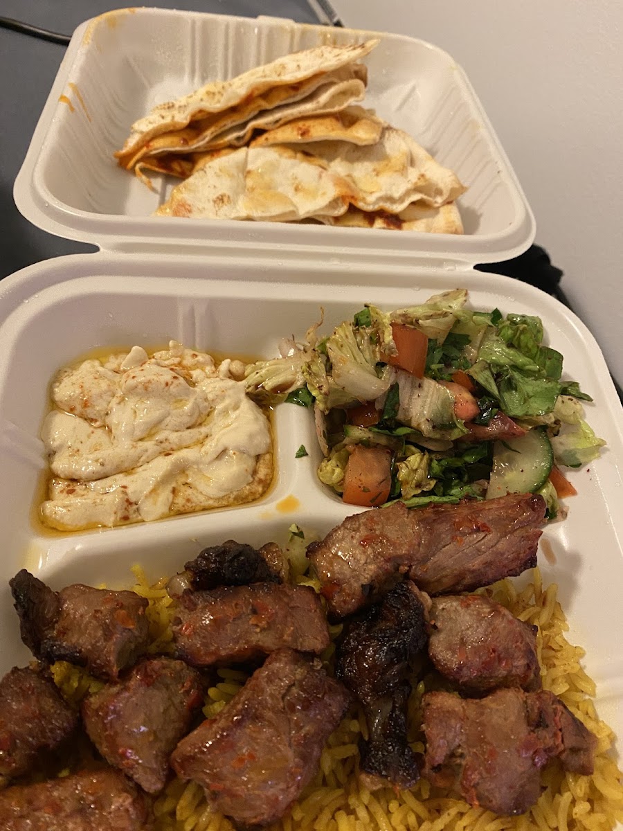The atmosphere is modest and utilitarian, more about the food than frills. This is a place where the kitchen’s focus on the charcoal-grilled aroma and spices takes center stage, rather than table settings or extensive décor. It tends to attract meat lovers who appreciate rich, intensely flavored dishes like the Beef Shish Kebab Combo — a generous enough portion designed to feed two that comes with rice and salad. You’ll also find comforting staples such as chicken drumsticks paired with traditional side dishes like hummus and fattoush, which balance the meat’s boldness with fresh, tangy notes.